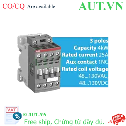 | Chức năng mở rộng | AF09...AF38 series contactors are mainly used for controlling 3-phase motors and power circuits up to 690 V AC and 220 V DC. These contactors are of the block type design with 3 main poles, Manage large control voltage variations, Reduced panel energy consumption, Very distinct closing and opening [...] |