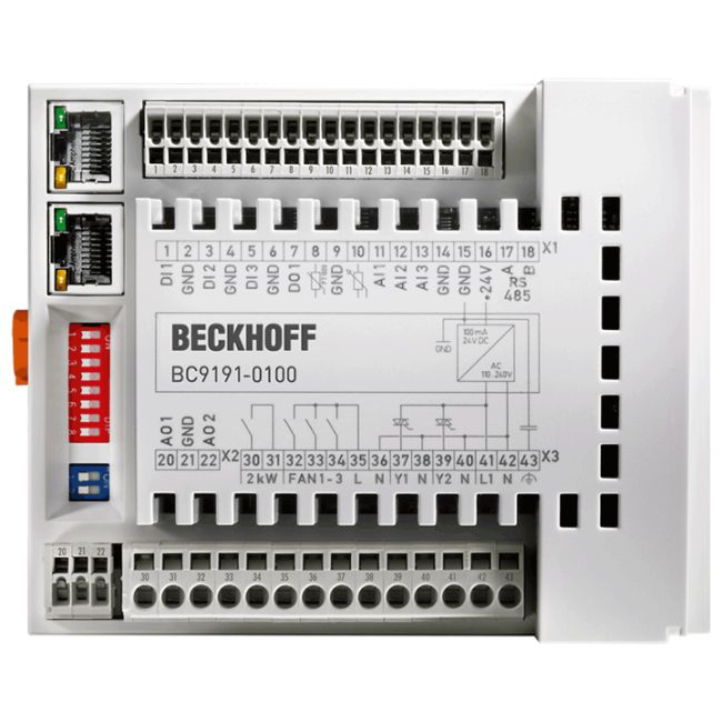 Bộ điều khiển tự động tòa nhà TwinCAT Beckhoff BC9191-0100 Bộ điều khiển tự động tòa nhà TwinCAT Beckhoff BC9191-0100 SKU: BC9191-0100 Hãng sản xuất: Beckhoff Chất lượng: Mới 100% Bảo hành: Chính hãng Chứng từ: CO/CQ, hóa đơn VAT Mua Ngay : nhà chế tạo: Beckhoff SKU: BC9191-0100 Ngày giao hàng: 1-3 days 1.000 ₫ Số lượng: Thêm vào giỏ hàng Giao đến Chọn quốc gia Vietnam Vietnam * Khác * Phương pháp vận chuyển Tên Ngày dự kiến giao hàng Giá bán Không có tùy chọn giao hàng nào Áp dụng Custom wishlist được Thêm vào danh sách yêu thích Thêm vào danh sách so sánh Bộ điều khiển tự động tòa nhà TwinCAT Beckhoff BC9191-0100Thông Tin Chi Tiết Sản PhẩmTechnical dataBC9191-0100Number of Bus Terminals64Max. number of bytes fieldbus512 byte input and 512 byte outputEthernet interface2 x RJ45 (switched)ProtocolTwinCAT ADS, Modbus TCPDigital inputs3 contacts (e.g. window contact, dew point, occupancy sensor)Analog inputs3 x 0…10 V (e.g. CO2 sensor, air quality sensor, brightness sensor) 1 x PT/Ni1000 (-20…+60 °C) for air temperature measurement 1 x resistance measurement for set value specification (0…10 K?)Digital outputs1 x 10 mA, LED output (max. 24 V) 1 x 230 V AC, 10 A, relay (e.g. air heater) 3 x 230 V AC, 1 A, relay (3-stage fan) 2 x 230 V AC, 1 A, triac (e.g. valves for heating and cooling)Analog outputs2 x 0…10 V (e.g. volumetric air flow controller)Bus interface2 x RJ45 (switched)Sub bus system1 x RS485Supply voltage230 V ACCurrent supply K-bus200 mADimensions (W x H x D)118 mm (127 mm with end cover and DIN rail mounting) x 100 mm x 70 mmWeightapprox. 345 gOperating/storage temperature0…+55 °C/-25…+85 °CProtect. class/installation pos.IP20/verticalApprovals/markingsCE>Sản Phẩm Liên QuanThương hiệuBeckhoffThời gian bảo hành1 Năm Thẻ sản phẩm Beckhoff (1997) , Phần mềm (71)