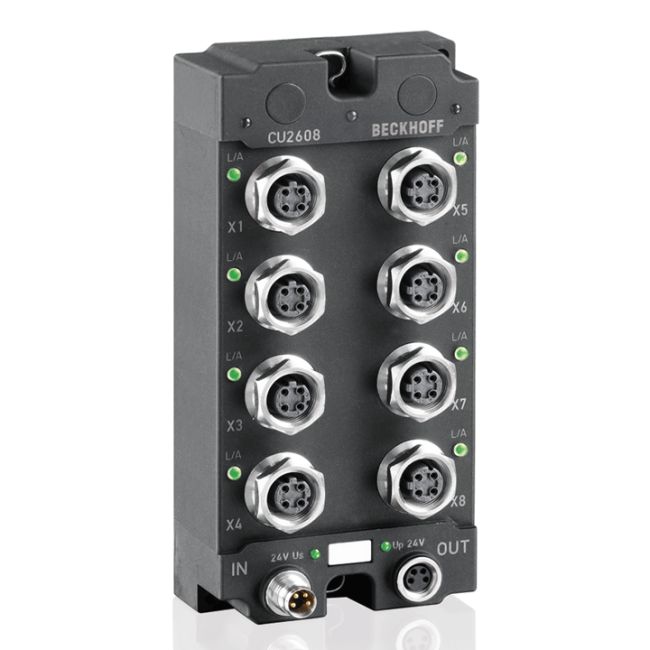 CU2608 | Infrastructure, 8-port switch, Ethernet, 100 Mbit/s, 24 V DC, M12 CU2608 | Infrastructure, 8-port switch, Ethernet, 100 Mbit/s, 24 V DC, M12 SKU: CU2608 Hãng sản xuất: Beckhoff Chất lượng: Mới 100% Bảo hành: Chính hãng Chứng từ: CO/CQ, hóa đơn VAT Mua Ngay : nhà chế tạo: Beckhoff SKU: CU2608 Ngày giao hàng: 1-3 days 1.000 ₫ Số lượng: Thêm vào giỏ hàng Giao đến Chọn quốc gia Vietnam Vietnam * Khác * Phương pháp vận chuyển Tên Ngày dự kiến giao hàng Giá bán Không có tùy chọn giao hàng nào Áp dụng Custom wishlist được Thêm vào danh sách yêu thích Thêm vào danh sách so sánh CU2608 | Infrastructure, 8-port switch, Ethernet, 100 Mbit/s, 24 V DC, M12Thông Tin Chi Tiết Sản PhẩmTechnical dataCU2608Bus systemall Ethernet (IEEE 802.3)-based protocols, store and forward switching mode, unmanagedNumber of Ethernet ports8Ethernet interface10BASE-T/100BASE-TX Ethernet, M12, D-coded, 4-pinCable lengthup to 100 m twisted pairData transfer rates10/100 MBit/s, IEEE 802.3u auto-negotiation, half or full duplex, automatic settingsHardware diagnosis1 LED per channel, activity, linkPower supply24 V DC (-15 %/+20 %), feed/downstream connection: M8, 4-pinCurrent consumptiontyp. 120 mAWeightapprox. 300 gOperating/storage temperature-30…+70 °C/-40…+85 °CProtect. class/installation pos.IP 65/66/67 (conforms to EN 60529)/variableApprovals/markingsCE, UL>Sản Phẩm Liên QuanThương hiệuBeckhoffThời gian bảo hành1 Năm Thẻ sản phẩm REMOTE I/O (1489) , Beckhoff (1997)