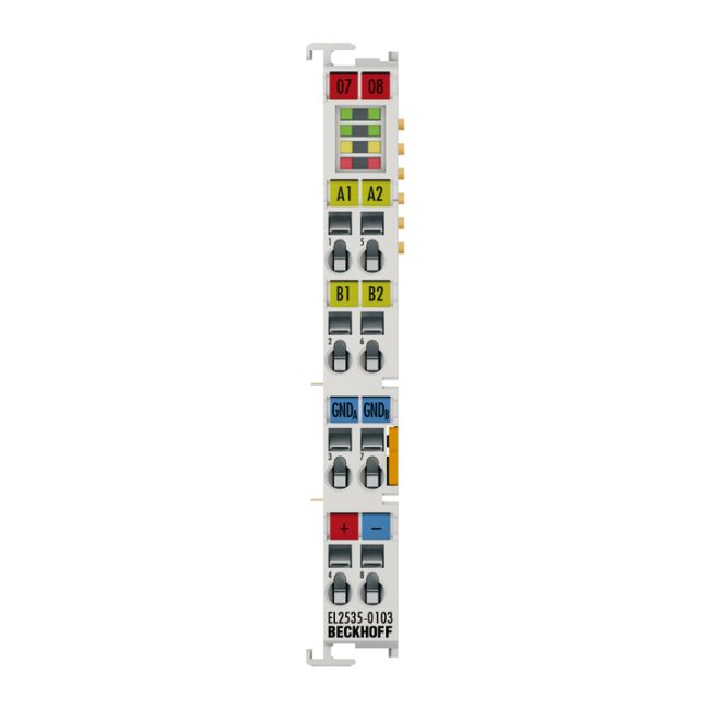 EL2535-0103 | EtherCAT Terminal, 2-channel PWM output, 12…48 V DC, 3 A, current-controlled EL2535-0103 | EtherCAT Terminal, 2-channel PWM output, 12…48 V DC, 3 A, current-controlled SKU: EL2535-0103 Hãng sản xuất: Beckhoff Chất lượng: Mới 100% Bảo hành: Chính hãng Chứng từ: CO/CQ, hóa đơn VAT Mua Ngay : nhà chế tạo: Beckhoff SKU: EL2535-0103 Ngày giao hàng: 1-3 days 1.000 ₫ Số lượng: Thêm vào giỏ hàng Giao đến Chọn quốc gia Vietnam Vietnam * Khác * Phương pháp vận chuyển Tên Ngày dự kiến giao hàng Giá bán Không có tùy chọn giao hàng nào Áp dụng Custom wishlist được Thêm vào danh sách yêu thích Thêm vào danh sách so sánh EL2535-0103 | EtherCAT Terminal, 2-channel PWM output, 12…48 V DC, 3 A, current-controlledThông Tin Chi Tiết Sản PhẩmTechnical dataEL2535-0103Connection technologyPWM output, push-pull outputsNumber of outputs2Nominal voltage12…48 V DCLoad typeinductive > 1 mHDistributed clocks–Max. output current3.5 AShort-circuit currenttyp. < 2 APWM clock frequency30 kHz defaultDuty factor0…100 % (current-controlled)Resolution10 bitReverse voltage protectionyesCurrent consumption E-bustyp. 110 mAElectrical isolation500 V (E-bus/field potential)Current consumption power contactstyp. 30 mA + loadBit width in the process image48 inputs/outputs: 2 x 16 bit data, 2 x 8 bit control/statusWeightapprox. 50 gOperating/storage temperature-25…+60 °C/-40…+85 °CRelative humidity95 %, no condensationVibration/shock resistanceconforms to EN 60068-2-6/EN 60068-2-27EMC immunity/emissionconforms to EN 61000-6-2/EN 61000-6-4Protect. class/installation pos.IP 20/see documentationPluggable wiringfor all ESxxxx terminalsApprovals/markingsCE>Sản Phẩm Liên QuanThương hiệuBeckhoffThời gian bảo hành1 Năm Thẻ sản phẩm Cầu đấu dây (992) , Beckhoff (1997)