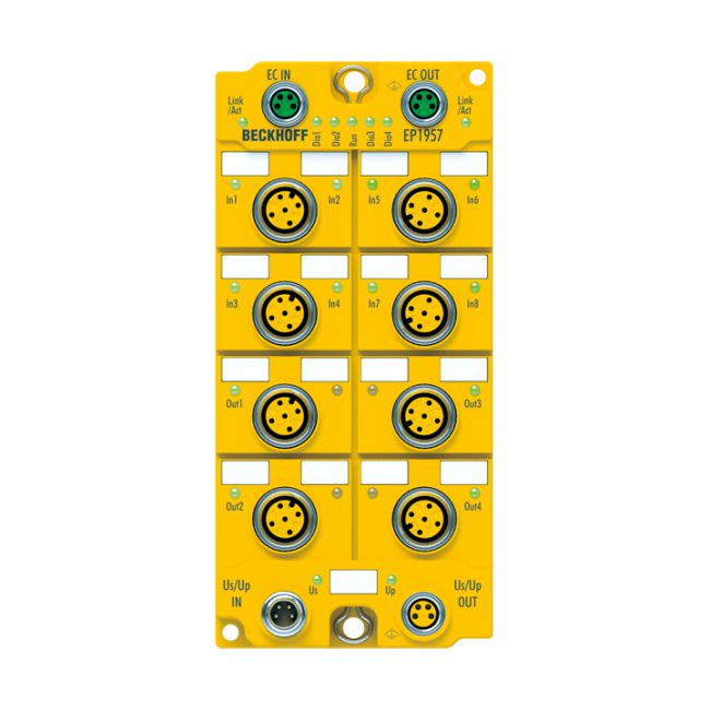 EP1957-0022 | EtherCAT Box, 8-channel digital input + 4-channel digital output, 24 V DC, 0.5 A, M12, TwinSAFE, TwinSAFE Logic EP1957-0022 | EtherCAT Box, 8-channel digital input + 4-channel digital output, 24 V DC, 0.5 A, M12, TwinSAFE, TwinSAFE Logic SKU: EP1957-0022 Hãng sản xuất: Beckhoff Chất lượng: Mới 100% Bảo hành: Chính hãng Chứng từ: CO/CQ, hóa đơn VAT Mua Ngay : nhà chế tạo: Beckhoff SKU: EP1957-0022 Ngày giao hàng: 1-3 days 1.000 ₫ Số lượng: Thêm vào giỏ hàng Giao đến Chọn quốc gia Vietnam Vietnam * Khác * Phương pháp vận chuyển Tên Ngày dự kiến giao hàng Giá bán Không có tùy chọn giao hàng nào Áp dụng Custom wishlist được Thêm vào danh sách yêu thích Thêm vào danh sách so sánh EP1957-0022 | EtherCAT Box, 8-channel digital input + 4-channel digital output, 24 V DC, 0.5 A, M12, TwinSAFE, TwinSAFE LogicThông Tin Chi Tiết Sản PhẩmTechnical dataEP1957-0022ProtocolTwinSAFE/Safety over EtherCATBus interface2 x M8 socket, shielded, screw typeConnection technologyM12, screw typeSpecificationlink unit between safe input and output signalsNumber of inputs8Number of outputs4Max. output current0.5 ACycle timeapprox. 1 ms/according to project sizeFault response time? watchdog time (parameterizable)Current consumption from US/UPmax. 120 mA/max. 60 mAInstallation positionvariableWeightapprox. 315 gProtection classIP 67 (according to EN 60529)Safety standardEN ISO 13849-1:2015 (Cat. 4, PL e) and EN 61508:2010 (SIL 3)>Sản Phẩm Liên QuanThương hiệuBeckhoffThời gian bảo hành1 Năm Thẻ sản phẩm REMOTE I/O (1489) , Beckhoff (1997)