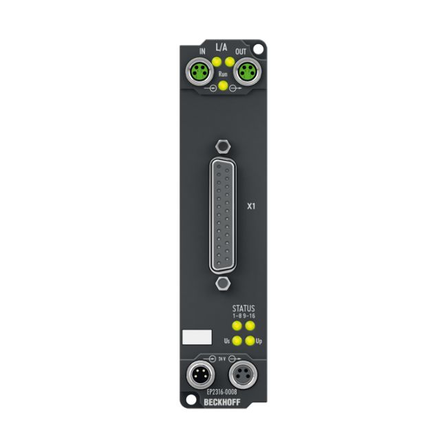 EtherCAT Box digital 8 input / 8 output 24VDC Beckhoff EP2316-0008 EtherCAT Box digital 8 input / 8 output 24VDC Beckhoff EP2316-0008 SKU: EP2316-0008 Hãng sản xuất: Beckhoff Chất lượng: Mới 100% Bảo hành: Chính hãng Chứng từ: CO/CQ, hóa đơn VAT Mua Ngay : nhà chế tạo: Beckhoff SKU: EP2316-0008 Ngày giao hàng: 1-3 days 1.000 ₫ Số lượng: Thêm vào giỏ hàng Giao đến Chọn quốc gia Vietnam Vietnam * Khác * Phương pháp vận chuyển Tên Ngày dự kiến giao hàng Giá bán Không có tùy chọn giao hàng nào Áp dụng Custom wishlist được Thêm vào danh sách yêu thích Thêm vào danh sách so sánh EtherCAT Box digital 8 input / 8 output 24VDC Beckhoff EP2316-0008Thông Tin Chi Tiết Sản PhẩmTechnical dataEP2316-0008ProtocolEtherCATBus interface2 x M8 socket, shielded, screw typeSpecificationEN 61131-2, type 1/3Number of channels8 inputs + 8 outputsInput/output connectionsD-sub socket, 25-pin, UNC4-40Input filter10 µs“0” signal voltage-3…+5 V“1” signal voltage11…30 V, 6 mA input current (EN 61131-2, type 3)Sensor supplyfrom control voltage, max. 0.5 A, short-circuit proof in totalLoad typeohmic, inductive, lamp loadRated load voltage24 V DC (-15 %/+20 %)Max. output current0.5 A per channel, individually short-circuit proofShort-circuit currenttyp. 1.5 AAuxiliary power currenttyp. 20 mA + loadCurrent consumption from US120 mAPower supply connectionfeed: 1 x M8 male socket, 4-pin; downstream connection: 1 x M8 female socket, 4-pinElectrical isolation500 VSpecial featuresideal for high number of channelsWeightapprox. 165 gOperating/storage temperature-25…+60 °C/-40…+85 °CVibration/shock resistanceconforms to EN 60068-2-6/EN 60068-2-27EMC immunity/emissionconforms to EN 61000-6-2/EN 61000-6-4Approvals/markingsCE, ULProtect. class/installation pos.IP 65/66/67 (conforms to EN 60529)/variable>Sản Phẩm Liên QuanThương hiệuBeckhoffThời gian bảo hành1 Năm Thẻ sản phẩm REMOTE I/O (1489) , Beckhoff (1997)