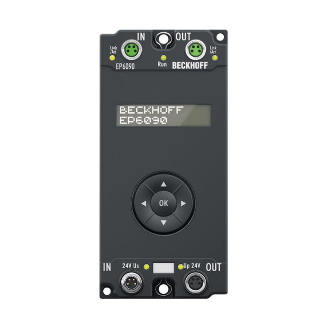 EP6090-0000 | EtherCAT Box, display with navigation switch, operating hours counter EP6090-0000 | EtherCAT Box, display with navigation switch, operating hours counter SKU: EP6090-0000 Hãng sản xuất: Beckhoff Chất lượng: Mới 100% Bảo hành: Chính hãng Chứng từ: CO/CQ, hóa đơn VAT Mua Ngay : nhà chế tạo: Beckhoff SKU: EP6090-0000 Ngày giao hàng: 1-3 days 1.000 ₫ Số lượng: Thêm vào giỏ hàng Giao đến Chọn quốc gia Vietnam Vietnam * Khác * Phương pháp vận chuyển Tên Ngày dự kiến giao hàng Giá bán Không có tùy chọn giao hàng nào Áp dụng Custom wishlist được Thêm vào danh sách yêu thích Thêm vào danh sách so sánh EP6090-0000 | EtherCAT Box, display with navigation switch, operating hours counterThông Tin Chi Tiết Sản PhẩmTechnical dataEP6090-0000ProtocolEtherCATBus interface2 x M8 socket, shielded, screw typeTechnologyEtherCAT display boxSwitch inputsnavigation switch: up, down, left, right, OKDisplayLC display, 2 x 16 characters (> 16 characters = scrolling text mode), switchable backlightSpecial characters2 characters (5 x 8 pixel matrix)Operating hours counter32 bit overflow after 136 years (no reset possible), secure data storage > 100 years (@15 minutes writing interval), accuracy: ±50 ppmTime measuring4 x 32 bit second counter (reset possible)Counter4 x 32 bit counter (reset possible)Storage intervalmanually/automatically every 15 minutesDistributed clocks–Current consumption from UStyp. 130 mA + sensor supplyPower supply connectionfeed: 1 x M8 male socket, 4-pin; downstream connection: 1 x M8 female socket, 4-pinWeightapprox. 230 gOperating/storage temperature-25…+60 °C/-40…+85 °CVibration/shock resistanceconforms to EN 60068-2-6/EN 60068-2-27EMC immunity/emissionconforms to EN 61000-6-2/EN 61000-6-4Protect. class/installation pos.IP 65/66/67 (conforms to EN 60529)/variableApprovals/markingsCE, UL>Sản Phẩm Liên QuanThương hiệuBeckhoffThời gian bảo hành1 Năm Thẻ sản phẩm REMOTE I/O (1489) , Beckhoff (1997)