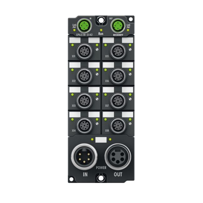 EP6228-3142 | EtherCAT Box, 8-channel communication interface + 4-channel digital input, IO-Link, master, Class A, Class B, M12 EP6228-3142 | EtherCAT Box, 8-channel communication interface + 4-channel digital input, IO-Link, master, Class A, Class B, M12 SKU: EP6228-3142 Hãng sản xuất: Beckhoff Chất lượng: Mới 100% Bảo hành: Chính hãng Chứng từ: CO/CQ, hóa đơn VAT Mua Ngay : nhà chế tạo: Beckhoff SKU: EP6228-3142 Ngày giao hàng: 1-3 days 1.000 ₫ Số lượng: Thêm vào giỏ hàng Giao đến Chọn quốc gia Vietnam Vietnam * Khác * Phương pháp vận chuyển Tên Ngày dự kiến giao hàng Giá bán Không có tùy chọn giao hàng nào Áp dụng Custom wishlist được Thêm vào danh sách yêu thích Thêm vào danh sách so sánh EP6228-3142 | EtherCAT Box, 8-channel communication interface + 4-channel digital input, IO-Link, master, Class A, Class B, M12Thông Tin Chi Tiết Sản PhẩmTechnical dataEP6228-3142ProtocolEtherCATBus interface2 x M12 socket, 4-pin (D-coded)Data transfer rates4.8 kbaud, 38.4 kbaud and 230.4 kbaudSpecification versionIO-Link V1.1, 4 x Class A, 4 x Class BIO-Link interfaces8Connection methodM12, screw typeNumber of inputs4 digital inputsNominal input voltage24 V DC (-15 %/+20 %)Input filter3.0 ms“0” signal voltage-3…+5 V“1” signal voltage11…30 V, 6 mA input current (EN 61131-2, type 3)Input currenttyp. 3 mA (EN 61131-2, type 3)Nominal voltage24 V DC (-15 %/+20 %)IO-Link sensor supply L+24 V DC, 1.4 A per port, ? 5.6 AIO-Link extra power P2424 V DC, max. 4.0 A per port, ? 4.0 A for 2 ports each for Class BCurrent consumption from UStyp. 130 mA + loadPower supply connectionfeed: 1 x 7/8″ plug, 5-pin; downstream connection: 1 x 7/8″ socket, 5-pinDistributed clocks–Special featuresClass A ports: 1, 2, 5, 6; Class B ports: 3, 4, 7, 8Electrical isolation500 VWeightapprox. 440 gOperating/storage temperature-25…+60 °C/-40…+85 °CVibration/shock resistanceconforms to EN 60068-2-6/EN 60068-2-27EMC immunity/emissionconforms to EN 61000-6-2/EN 61000-6-4Protect. class/installation pos.IP 65/66/67 (conforms to EN 60529)/variableApprovals/markingsCE, UL in preparation>Sản Phẩm Liên QuanThương hiệuBeckhoffThời gian bảo hành1 Năm Thẻ sản phẩm REMOTE I/O (1489) , Beckhoff (1997)
