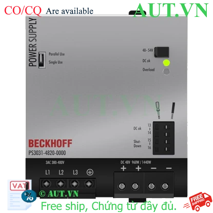 PS3031-4820-0000 | Power supply PS3000; output: 48 V DC, 20 A; input: 3 AC 380…480 V, 3-phase PS3031-4820-0000 | Power supply PS3000; output: 48 V DC, 20 A; input: 3 AC 380…480 V, 3-phase SKU: PS3031-4820-0000 Hãng sản xuất: Beckhoff Chất lượng: Mới 100% Bảo hành: Chính hãng Chứng từ: CO/CQ, hóa đơn VAT Mua Ngay : nhà chế tạo: Beckhoff SKU: PS3031-4820-0000 1.000 ₫ Số lượng: Thêm vào giỏ hàng Danh sách yêu thích tùy chỉnh được Thêm vào danh sách yêu thích Thêm vào danh sách so sánh Gửi email cho một người bạn PS3031-4820-0000 | Power supply PS3000; output: 48 V DC, 20 A; input: 3 AC 380…480 V, 3-phaseThông Tin Chi Tiết Sản PhẩmTechnical dataPS3031-4820-0000Input voltage3 AC 380…480 VWide-range inputyesInput currenttyp. 1.65 A at 400 V ACSwitch-on current limiteryesMains frequency50…60 HzStarting currenttyp. 4.5 A peak at 400 V ACHarmonic correction (PFC)activeOutput voltage48 V DCAdjustment range48…54 V DCOutput current20 AOutput960 WOutpout power for 4 s1440 WExtra power50 %/4 sPrecise fuse releaseyesDC OK LEDyesOverload LEDyesShut down contactyesEfficiencyapprox. 95.4 %Operating temperature-25…+70 °CVibration resistanceconforms to EN 60068-2-6Shock resistanceconforms to EN 60068-2-27Weight1.5 kgApprovals/markingsCE, UL508Protection classIP 20>Sản Phẩm Liên QuanThương hiệuBeckhoffThời gian bảo hành1 Năm Thẻ sản phẩm Bộ nguồn xung (1570) , Beckhoff (1878)