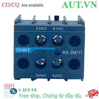 AX-3X/11 tiếp điểm phụ của contactor, NXC, CHINT Top mountingDPST (1NO+1NC)Phương pháp đấu dây: Bắt vítDòng sản phẩm tương thích: NXC-265, NXC330, NXC-400, NXC-500, NXC-630 31.300 ₫ 28.170 ₫ Thêm vào giỏ hàng Thêm vào danh sách so sánh Danh sách yêu thích tùy chỉnh được Thêm vào danh sách yêu thích