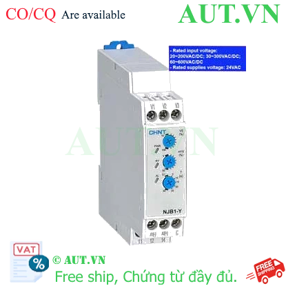 Rơ le bảo vệ pha Chint NJB1-Y3 DC24V, 10-100%, chính hãng 24VDCChức năng bảo vệ: Quá áp, Thấp ápCài đặt quá áp (% điện áp đầu vào): 10...100%Cài đặt điện áp thấp (% điện áp đầu vào): 10...100%Điện áp đầu vào: 20...200VAC, 20...200VDC, 30...300VAC, 30...300VDC, 60...600VAC, 60...600VDC 611.100 ₫ 549.990 ₫ Thêm vào giỏ hàng Thêm vào danh sách so sánh Danh sách yêu thích tùy chỉnh được Thêm vào danh sách yêu thích
