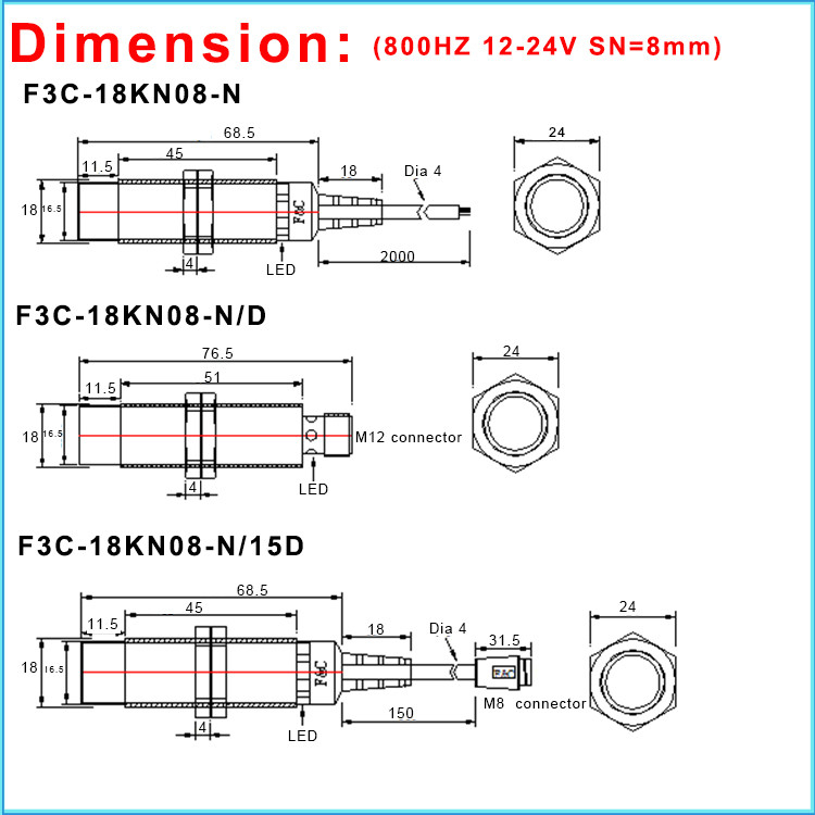 Cảm biến tiệm cận F&C Sensor F3C-18KN08-N R2M Cảm Biến Tiệm Cận F&C F3C-18KN08-N R2M M18 8mm Sensing Inductive Proximity Sensor 3 Wire 12V Non-Flush Inductive Switch Place of Origin: China Brand Name: F&C Certification: CE RoHS Model Number: F3C-18KN08-N R2M Mua Ngay : nhà chế tạo: F&C Sensor SKU: F3C-18KN08-N R2M Ngày giao hàng: 1 week 670 ₫ Số lượng: Thêm vào giỏ hàng Danh sách yêu thích tùy chỉnh được Thêm vào danh sách yêu thích Thêm vào danh sách so sánh Gửi email cho một người bạn Cảm biến tiệm cận F&C Sensor F3C-18KN08-N R2M M18 8mm Sensing Inductive Proximity Sensor 3 Wire 12V Non-Flush Inductive SwitchThông tin cơ bản Detail Information Output Method: Normal Open Detection Distance: 8mm Standard Detection Object: 24*24*1(Iron) Operating Voltage: 12-24VDC+/-10% Response Frequency: 800HZ Polarity Reverse Protection: Yes Protection Grade: IP67 Operating Temperature: -25~70℃ Material: PBT And Nickelled Brass Highlight: industrial proximity sensor, industrial optical sensor Thông tin chi tiết Length Standard Body Short Body NPN NO F3C-18KS05-N R2M F3C-18KN08-N R2M F3C-18ES05-N R2M F3C-18EN08-N R2M NPN NC F3C-18KS05-N2 R2M F3C-18KN08-N2 R2M F3C-18ES05-N2 R2M F3C-18EN08-N2 R2M PNP NO F3C-18KS05-P R2M F3C-18KN08-P R2M F3C-18ES05-P R2M F3C-18EN08-P R2M PNP NC F3C-18KS05-P2 R2M F3C-18KN08-P2 R2M F3C-18ES05-P2 R2M F3C-18EN08-P2 R2M Sensing Distance 5mm 8mm 5mm 8mm Standard Object 15×15×1(iron) 24×24×1(iron) 15×15×1(iron) 24×24×1(iron) Response Frequency 600Hz Hysteresis ≤10% sensing distance Operating Voltage 12~24VDC±10% (customize 5V) Current Consumption ≤8mA (No Load) Load Current 100mA Max at 24Vdc Circuit Protection Polarity Reverse Protection and Short-Circuit Protection Operating Temperature -20°C~+70°C Material PBTand SUS304 Wiring method 2M/3-wires Protection degree IP67 Cam Kết Chất Lượng và Dịch Vụ Chúng tôi có hơn 35.000 sản phẩm vì vậy hãy liên hệ với chúng tôi Để được tư vấn và check tình trạng hàng bạn nhé! AUTO TECH VN cam kết: 1. Hàng Chính Hãng. 2. Xuất được Hóa đơn VAT. 3. Giá cạnh tranh. 4. Sản phẩm bảo hành theo chính sách của hãng.5. Miễn Phí hỗ trợ cài đặt và sử dụng thiết bị. Thông Tin Liên Hệ AUTO TECH VN - AUT.VN ĐT/ Zalo : 0968.053.025 Email: support@aut.vn Email2: sale@aut.vn Địa chỉ: 07 KĐT Flora Mizuki, Đường Số 1, Bình Hưng, Bình Chánh, Hồ Chí Minh Thẻ sản phẩm Cảm biến tiệm cận (8626) , F&C Sensor (144)