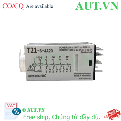 Timer Hanyong Nux T21-6-4A20 200...230VACĐầu ra trễ: 4PDTThời gian hoạt động: Power ON start0.6...6s, 6...60s, 0.6...6min, 6...60minChế độ hoạt động: ON delay, Flicker OFF start, Flicker ON start, Interval 231.210 ₫ 192.675 ₫ Thêm vào giỏ hàng Thêm vào danh sách so sánh Danh sách yêu thích tùy chỉnh được Thêm vào danh sách yêu thích