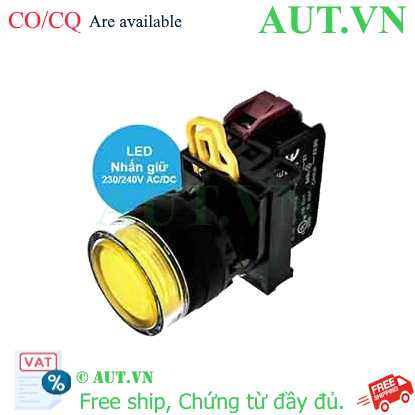 Spec: Có đèn; 230VAC, 240VAC; D22; Vàng; 1NC; Nhấn giữ; Round full-guard (Flush); Chất liệu vỏ: Plastic; Chất liệu vòng bezel: Plastic