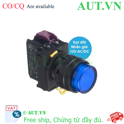 Spec: Có đèn; 12VAC, 12VDC; D22; Xanh da trời; 1NC; Nhấn giữ; Round extended; Chất liệu vỏ: Plastic; Chất liệu vòng bezel: Plastic