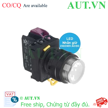 Spec: Có đèn; 230VAC, 240VAC; D22; Trắng; 1NC; Nhấn giữ; Round extended; Chất liệu vỏ: Plastic; Chất liệu vòng bezel: Plastic