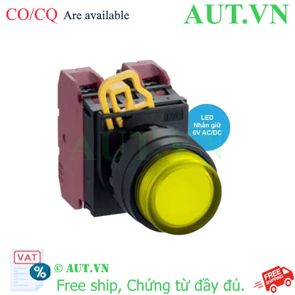 Spec: Có đèn; 6VAC, 6VDC; D22; Vàng; 2NC; Nhấn giữ; Round extended; Chất liệu vỏ: Plastic; Chất liệu vòng bezel: Plastic