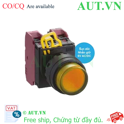 Spec: Có đèn; 6VAC, 6VDC; D22; Màu hổ phách; 2NC; Nhấn giữ; Round extended; Chất liệu vỏ: Plastic; Chất liệu vòng bezel: Plastic