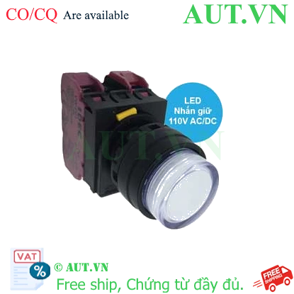 Spec: Có đèn; 110VAC; D22; Trắng tinh khiết; 2NC; Nhấn giữ; Round extended; Chất liệu vỏ: Plastic; Chất liệu vòng bezel: Plastic