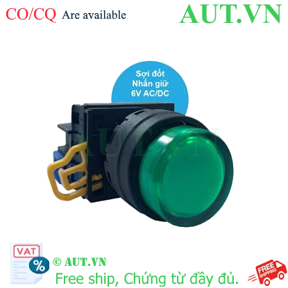 Spec: Có đèn; 6VAC, 6VDC; D22; Xanh lá; 1NO; Nhấn giữ; Round extended; Chất liệu vỏ: Plastic; Chất liệu vòng bezel: Plastic