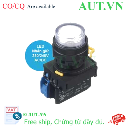Spec: Có đèn; 230VAC, 240VAC; D22; Trắng tinh khiết; 1NO; Nhấn giữ; Round extended; Chất liệu vỏ: Plastic; Chất liệu vòng bezel: Plastic