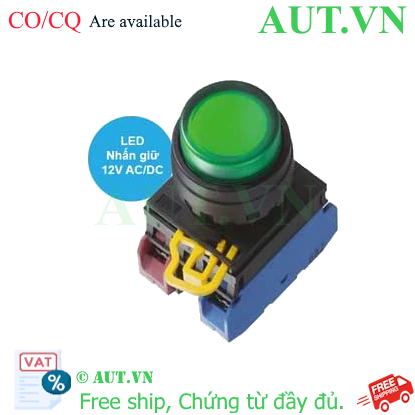 Spec: Có đèn; 12VAC, 12VDC; D22; Xanh lá; 1NO+1NC; Nhấn giữ; Round extended; Chất liệu vỏ: Plastic; Chất liệu vòng bezel: Plastic