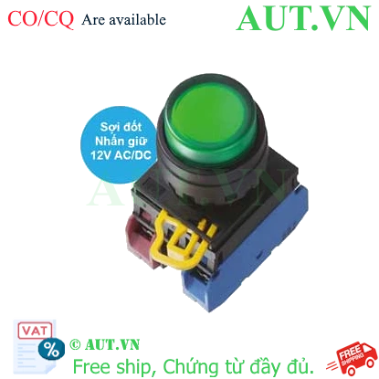 Spec: Có đèn; 12VAC, 12VDC; D22; Xanh lá; 1NO+1NC; Nhấn giữ; Round extended; Chất liệu vỏ: Plastic; Chất liệu vòng bezel: Plastic