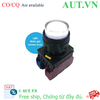 Spec: Có đèn; 230VAC, 240VAC; D22; Trắng tinh khiết; 1NO+1NC; Nhấn giữ; Round extended; Chất liệu vỏ: Plastic; Chất liệu vòng bezel: Plastic