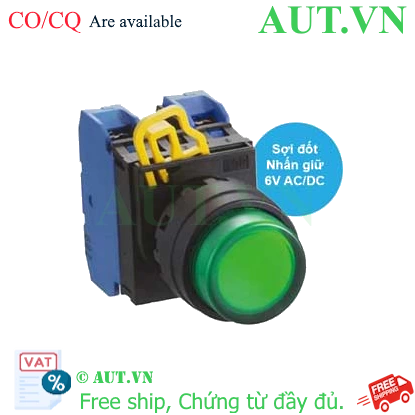 Spec: Có đèn; 6VAC, 6VDC; D22; Xanh lá; 2NO; Nhấn giữ; Round extended; Chất liệu vỏ: Plastic; Chất liệu vòng bezel: Plastic