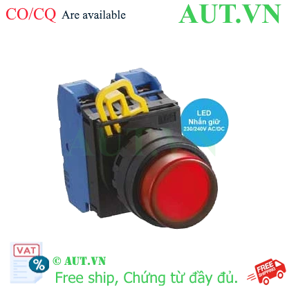 Spec: Có đèn; 230VAC, 240VAC; D22; Đỏ; 2NO; Nhấn giữ; Round extended; Chất liệu vỏ: Plastic; Chất liệu vòng bezel: Plastic