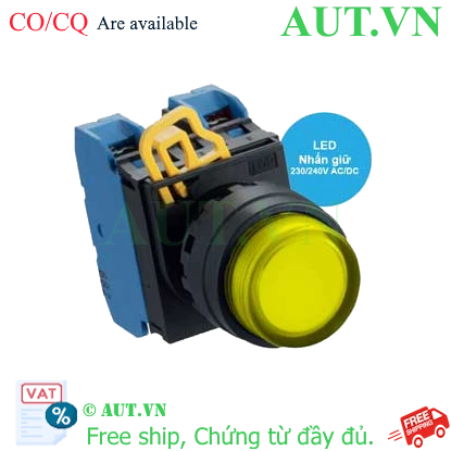 Spec: Có đèn; 230VAC, 240VAC; D22; Vàng; 2NO; Nhấn giữ; Round extended; Chất liệu vỏ: Plastic; Chất liệu vòng bezel: Plastic