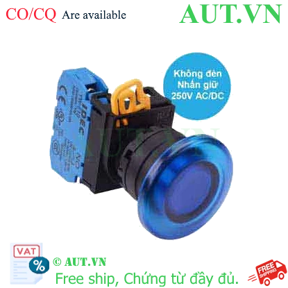 Spec: Có đèn; Không bao gồm đèn; D22; Xanh da trời; 1NO; Nhấn giữ; Mushroom; Chất liệu vỏ: Plastic; Chất liệu vòng bezel: Plastic