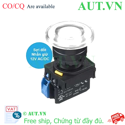 Spec: Có đèn; 12VAC, 12VDC; D22; Trắng; 1NO; Nhấn giữ; Mushroom; Chất liệu vỏ: Plastic; Chất liệu vòng bezel: Plastic
