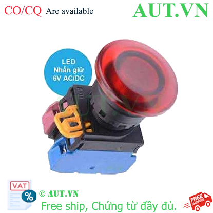 Spec: Có đèn; 6VAC, 6VDC; D22; Đỏ; 1NO+1NC; Nhấn giữ; Mushroom; Chất liệu vỏ: Plastic; Chất liệu vòng bezel: Plastic