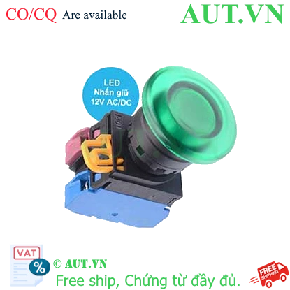 Spec: Có đèn; 12VAC, 12VDC; D22; Xanh lá; 1NO+1NC; Nhấn giữ; Mushroom; Chất liệu vỏ: Plastic; Chất liệu vòng bezel: Plastic