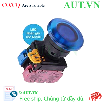 Spec: Có đèn; 12VAC, 12VDC; D22; Xanh da trời; 1NO+1NC; Nhấn giữ; Mushroom; Chất liệu vỏ: Plastic; Chất liệu vòng bezel: Plastic