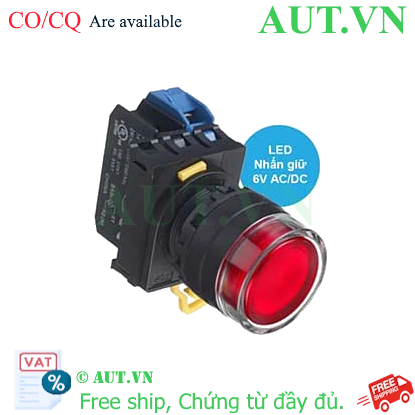 Spec: Có đèn; 6VAC, 6VDC; D22; Đỏ; 1NO; Nhấn giữ; Round full-guard (Flush); Chất liệu vỏ: Plastic; Chất liệu vòng bezel: Plastic