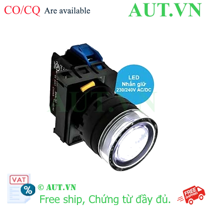 Spec: Có đèn; 230VAC, 240VAC; D22; Trắng; 1NO; Nhấn giữ; Round full-guard (Flush); Chất liệu vỏ: Plastic; Chất liệu vòng bezel: Plastic