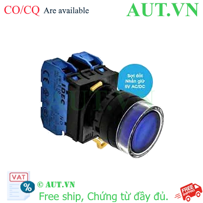 Spec: Có đèn; 6VAC, 6VDC; D22; Xanh da trời; 2NO; Nhấn giữ; Round full-guard (Flush); Chất liệu vỏ: Plastic; Chất liệu vòng bezel: Plastic