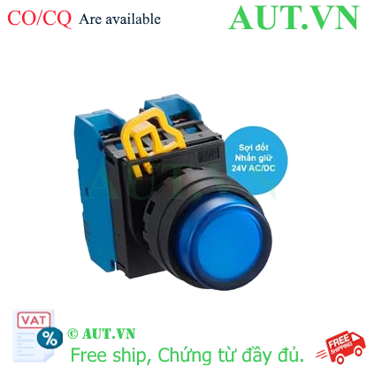 Spec: Có đèn; 24VAC, 24VDC; D22; Xanh da trời; 2NO; Nhấn giữ; Round extended; Chất liệu vỏ: Plastic; Chất liệu vòng bezel: Plastic