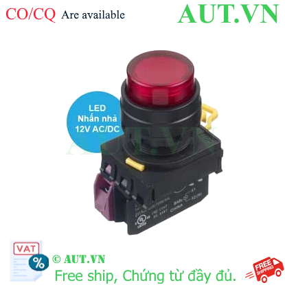 Spec: Có đèn; 12VAC, 12VDC; D22; Đỏ; 1NC; Nhấn nhả; Round extended; Chất liệu vỏ: Plastic; Chất liệu vòng bezel: Plastic