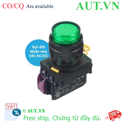 Spec: Có đèn; 24VAC, 24VDC; D22; Xanh lá; 1NC; Nhấn nhả; Round extended; Chất liệu vỏ: Plastic; Chất liệu vòng bezel: Plastic