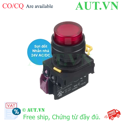 Spec: Có đèn; 24VAC, 24VDC; D22; Đỏ; 1NC; Nhấn nhả; Round extended; Chất liệu vỏ: Plastic; Chất liệu vòng bezel: Plastic