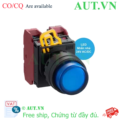 Spec: Có đèn; 24VAC, 24VDC; D22; Xanh da trời; 2NC; Nhấn nhả; Round extended; Chất liệu vỏ: Plastic; Chất liệu vòng bezel: Plastic