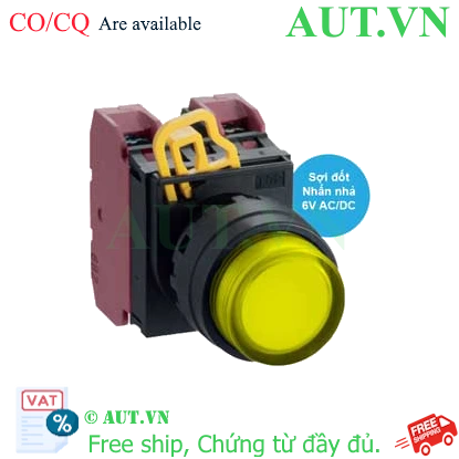 Spec: Có đèn; 6VAC, 6VDC; D22; Vàng; 2NC; Nhấn nhả; Round extended; Chất liệu vỏ: Plastic; Chất liệu vòng bezel: Plastic