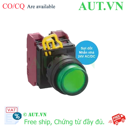Spec: Có đèn; 24VAC, 24VDC; D22; Xanh lá; 2NC; Nhấn nhả; Round extended; Chất liệu vỏ: Plastic; Chất liệu vòng bezel: Plastic