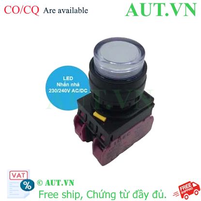 Spec: Có đèn; 230VAC, 240VAC; D22; Trắng; 2NC; Nhấn nhả; Round extended; Chất liệu vỏ: Plastic; Chất liệu vòng bezel: Plastic