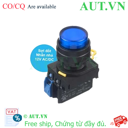 Spec: Có đèn; 12VAC, 12VDC; D22; Xanh da trời; 1NO; Nhấn nhả; Round extended; Chất liệu vỏ: Plastic; Chất liệu vòng bezel: Plastic
