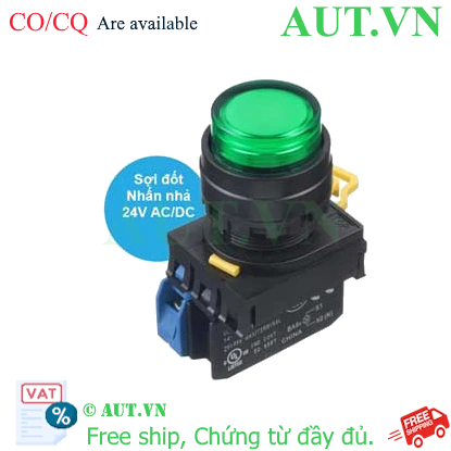 Spec: Có đèn; 24VAC, 24VDC; D22; Xanh lá; 1NO; Nhấn nhả; Round extended; Chất liệu vỏ: Plastic; Chất liệu vòng bezel: Plastic