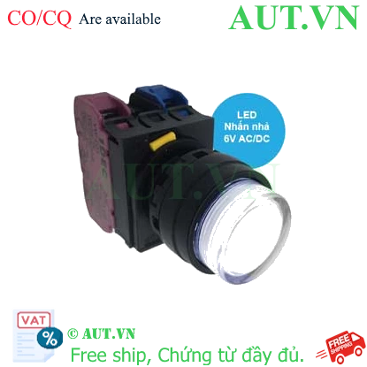 Spec: Có đèn; 6VAC, 6VDC; D22; Trắng tinh khiết; 1NO+1NC; Nhấn nhả; Round extended; Chất liệu vỏ: Plastic; Chất liệu vòng bezel: Plastic