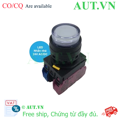 Spec: Có đèn; 24VAC, 24VDC; D22; Trắng; 1NO+1NC; Nhấn nhả; Round extended; Chất liệu vỏ: Plastic; Chất liệu vòng bezel: Plastic