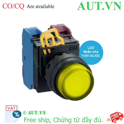Đặc điểm nổi bật: Nút nhấn nhả có đèn IDEC YW1L-M2E11QHY 110VAC D22 1NO+1NC (Vàng)