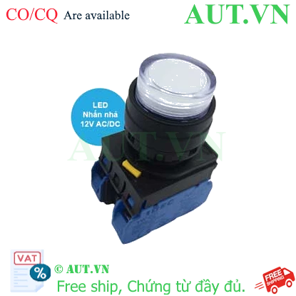 Spec: Có đèn; 12VAC, 12VDC; D22; Trắng tinh khiết; 2NO; Nhấn nhả; Round extended; Chất liệu vỏ: Plastic; Chất liệu vòng bezel: Plastic