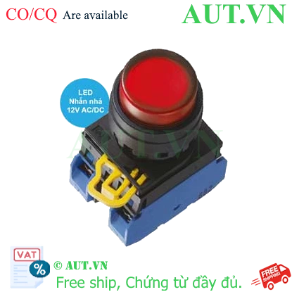 Spec: Có đèn; 12VAC, 12VDC; D22; Đỏ; 2NO; Nhấn nhả; Round extended; Chất liệu vỏ: Plastic; Chất liệu vòng bezel: Plastic